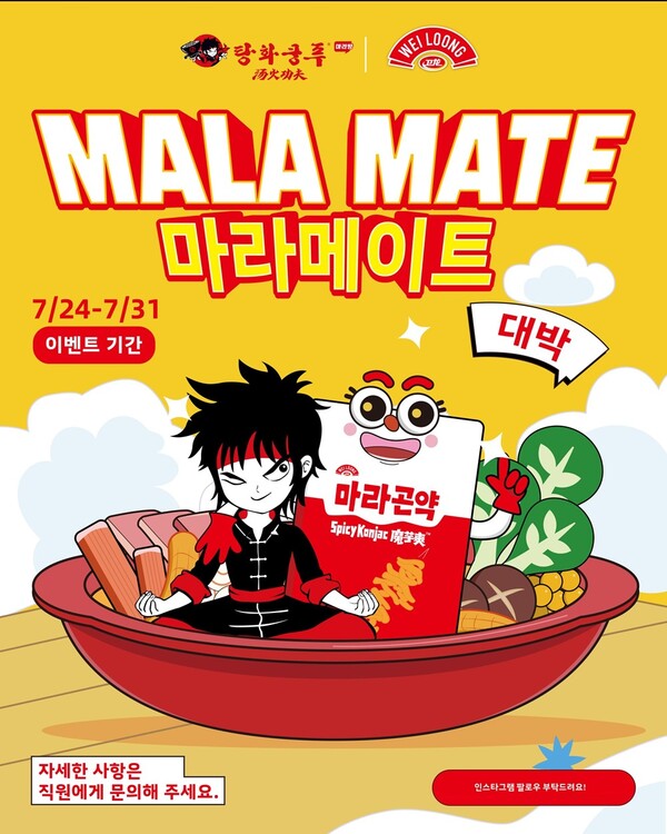 ±¹³» ¸¶¶óÅÁ ÇÁ·£Â÷ÀÌÁî ÅÁÈÄôǪ¸¶¶óÅÁÀÌ ±Û·Î¹ú ½Äǰ ±â¾÷ ¡®¿þÀÌ·Õ(卫龙WEILOONG)¡¯°ú ÇÔ²² ¼ÒºñÀÚ Âü¿©Çü À̺¥Æ® ¡®¸¶¶ó¸ÞÀÌÆ®(MALA MATE)¡¯¸¦ 7¿ù 24ÀϺÎÅÍ 31ÀϱîÁö ÀÏÁÖÀϰ£ ÁøÇàÇÑ´Ù.¡®¸¶¶ó¸ÞÀÌ..